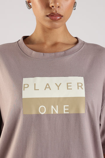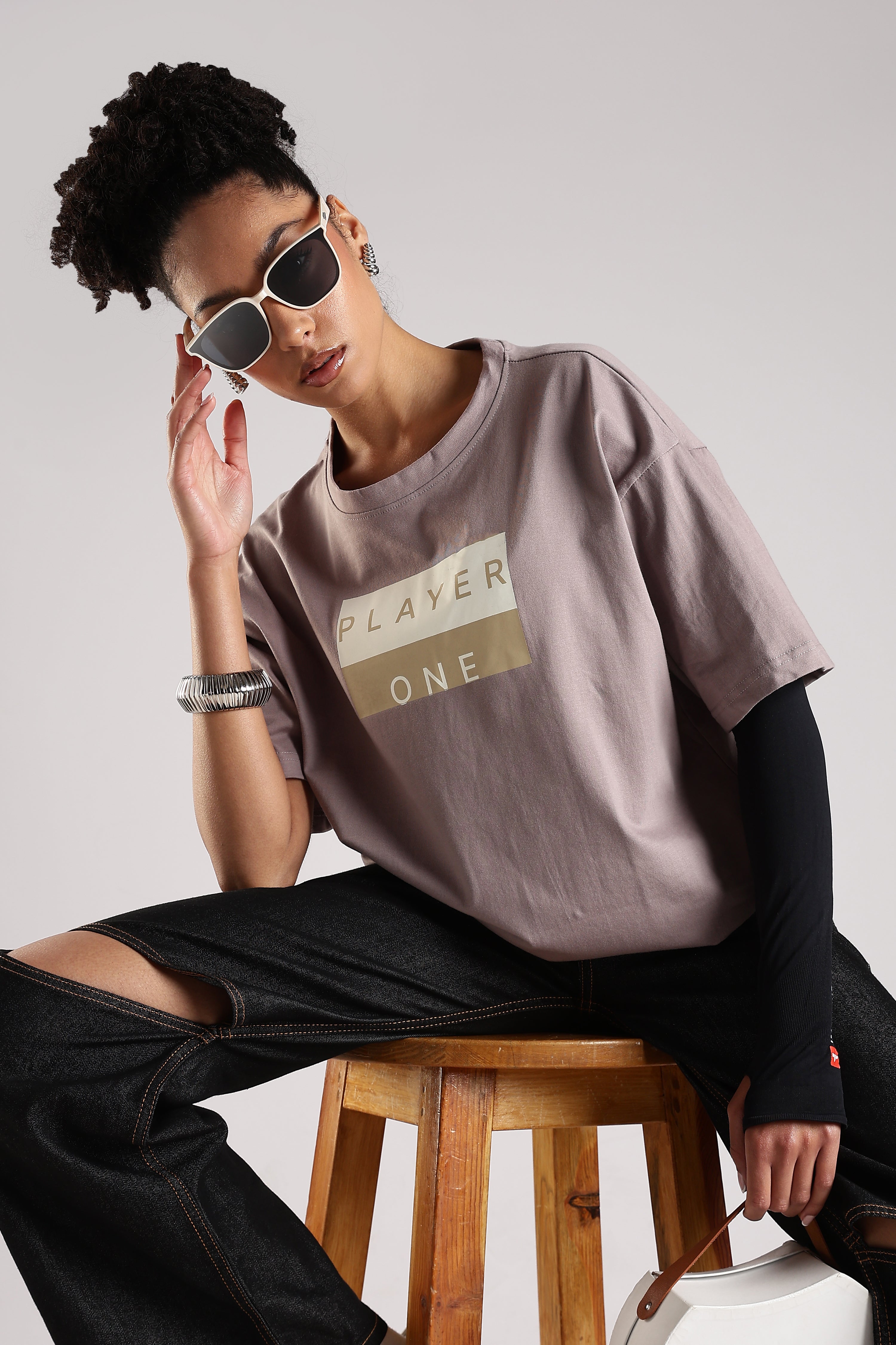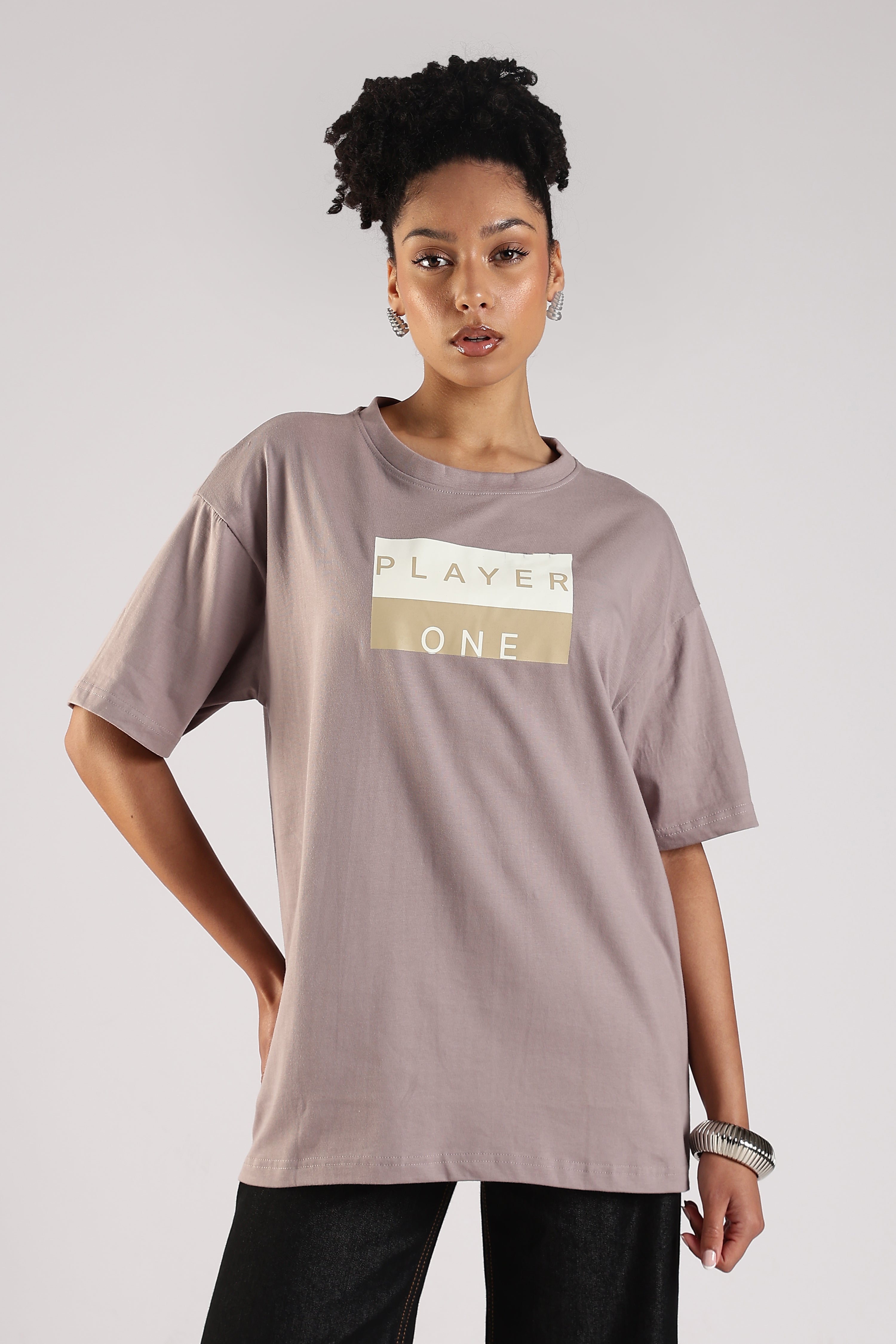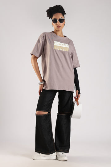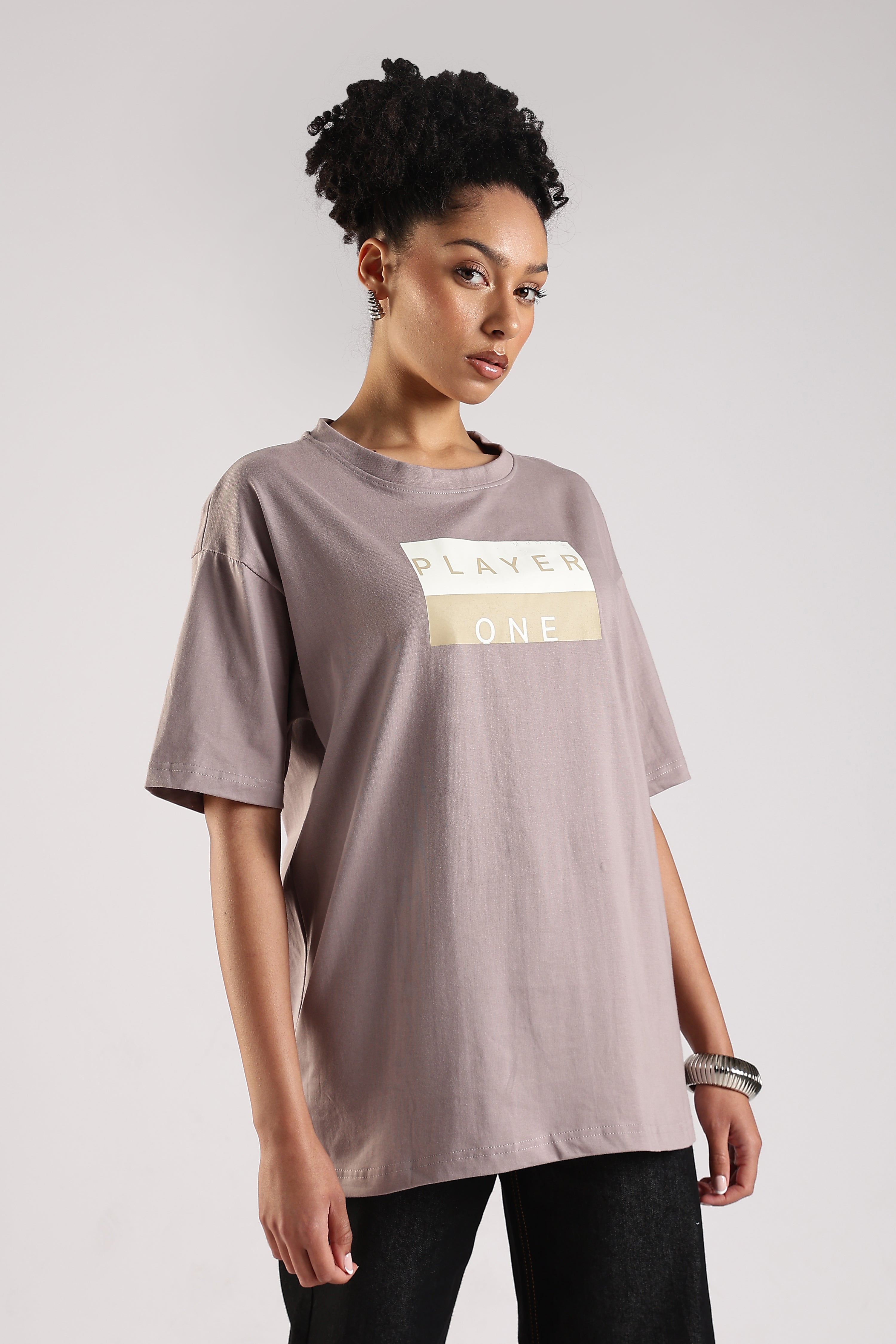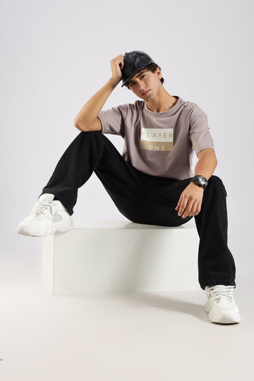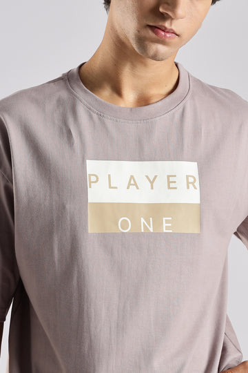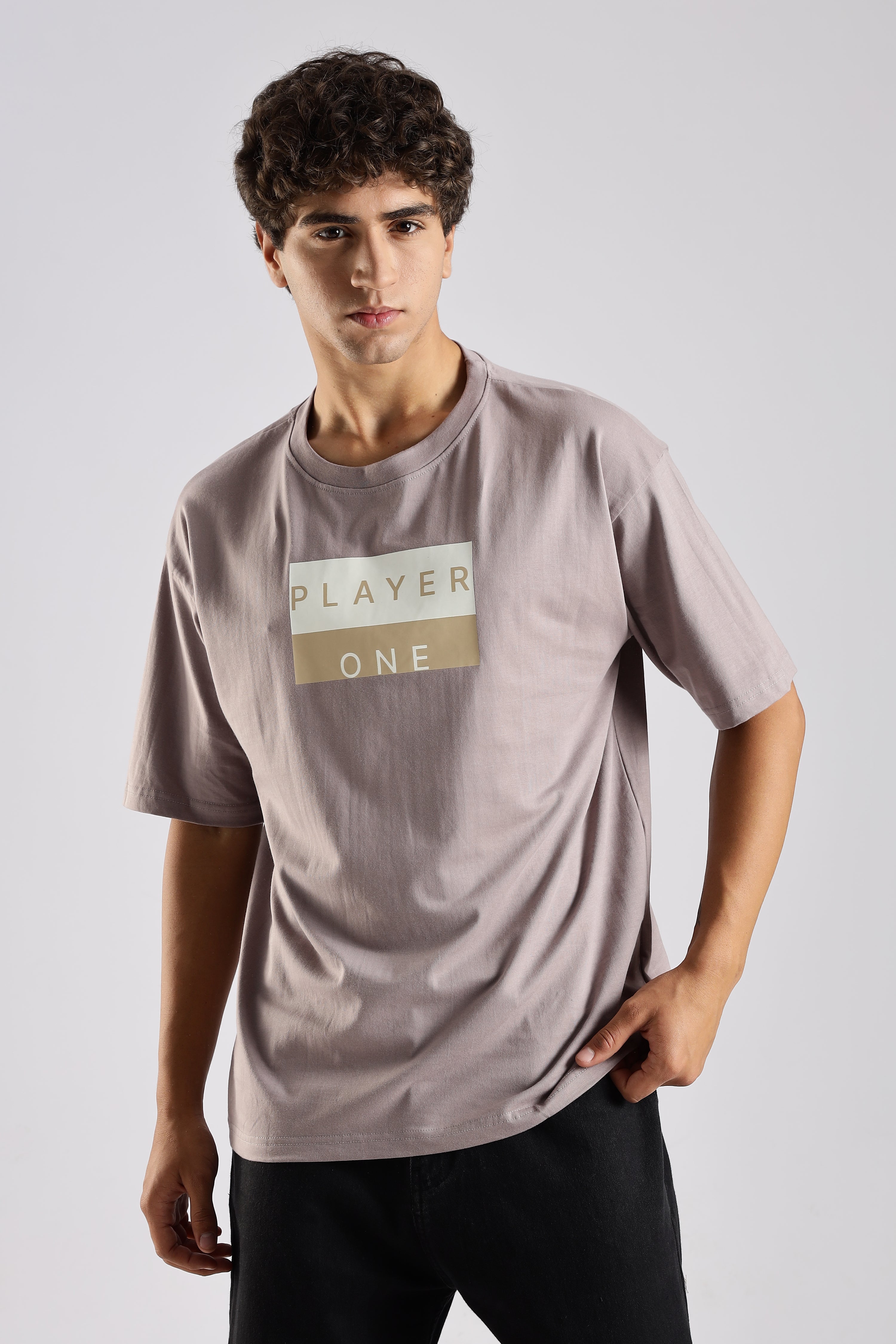 Stand out with our Beige Oversized Streetwear T-Shirt, a versatile addition to any wardrobe. This T-shirt offers a comfortable, relaxed fit. The "Player One" logo adds a subtle yet stylish touch, perfect for any casual or streetwear look.